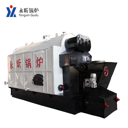 該系列鍋爐是一種新型三回程水火管混合式鍋爐。鍋爐左側(cè)布置了對流管束受熱面,鍋筒內(nèi)采用了高效節(jié)能螺紋煙管。爐膛內(nèi)布置了雙面水冷壁和低而長的后拱與短而高的前拱相配合,采用鏈條爐排,配有鼓風機、引風機、除渣機等實現(xiàn)機械化操作。燃料自煤斗落在爐排上,隨爐排移動,逐漸燃燒,在前后拱的配合下,使火焰形成激烈的燃燒旋流。煙氣由后拱上部燃燒室進入對流管束、經(jīng)側(cè)煙箱、前煙箱進入螺紋煙管、再經(jīng)過省煤器、除塵器,最后由引風機通過煙筒排向大氣。同時采用了獨特的回水引射裝置,有效地防止了水冷壁爆管和鍋筒底部鼓包事故的發(fā)生,是理想的換代產(chǎn)品。